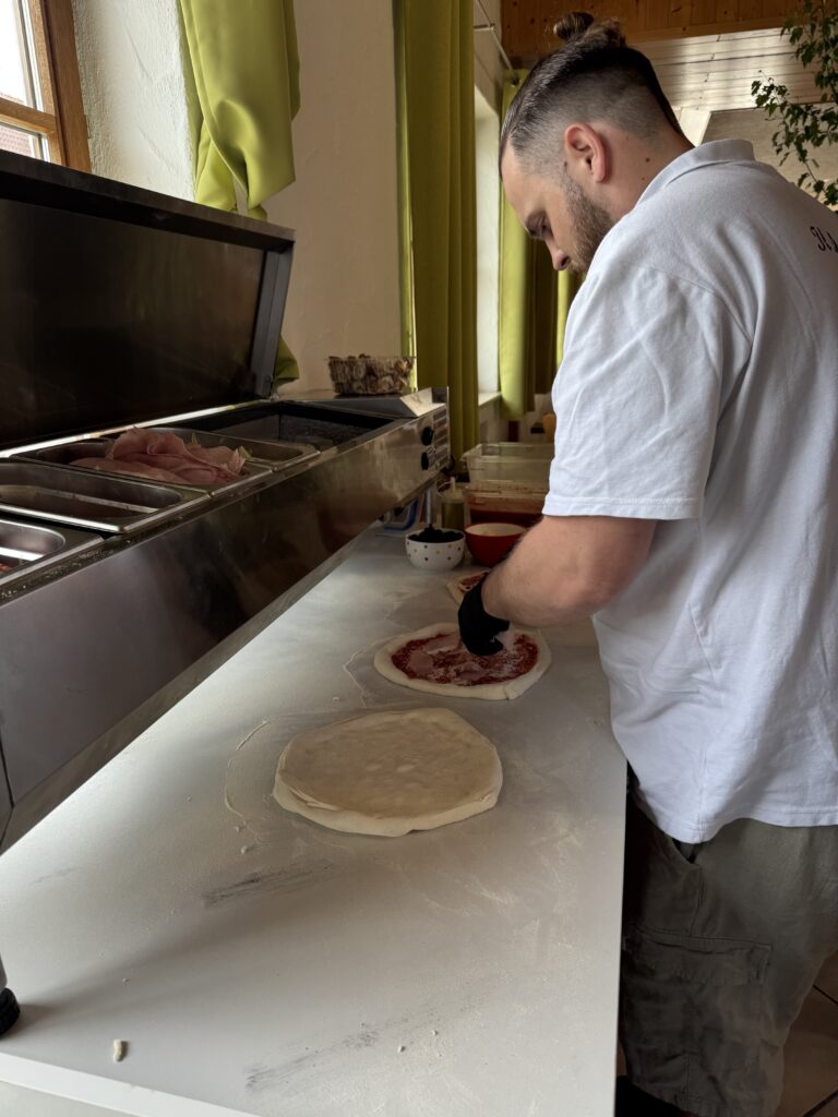 - Individuelle Beläge: Wählen Sie aus einer Vielzahl von klassischen und kreativen Belägen oder stellen Sie Ihre eigenen Wunschpizzen zusammen.